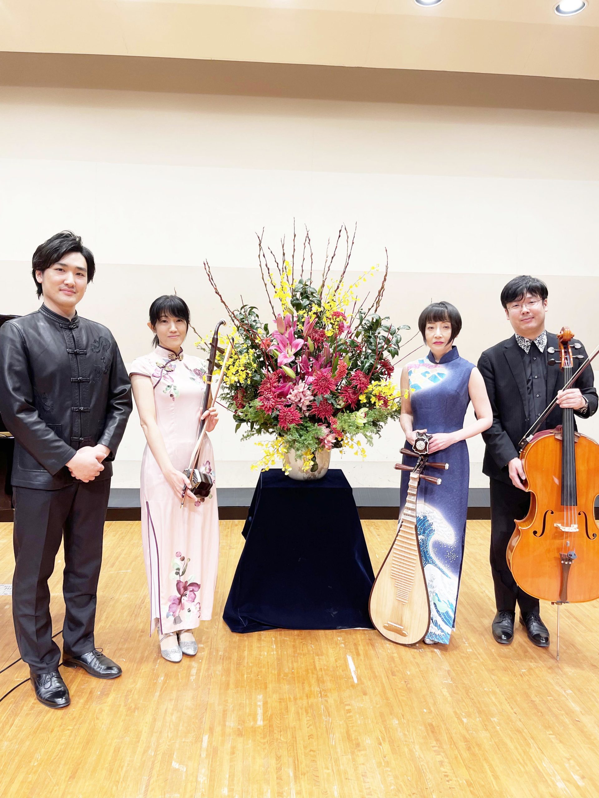 コロナ禍にあり数度流れたコンサートでしたが、今回はスペシャルゲストに中国琵琶奏者のシャオロン様にご参加いただき、チェロの夏秋祐一さん、ピアノの藤原新治さんと言った逸材メンバー揃いでお届させていただきました。